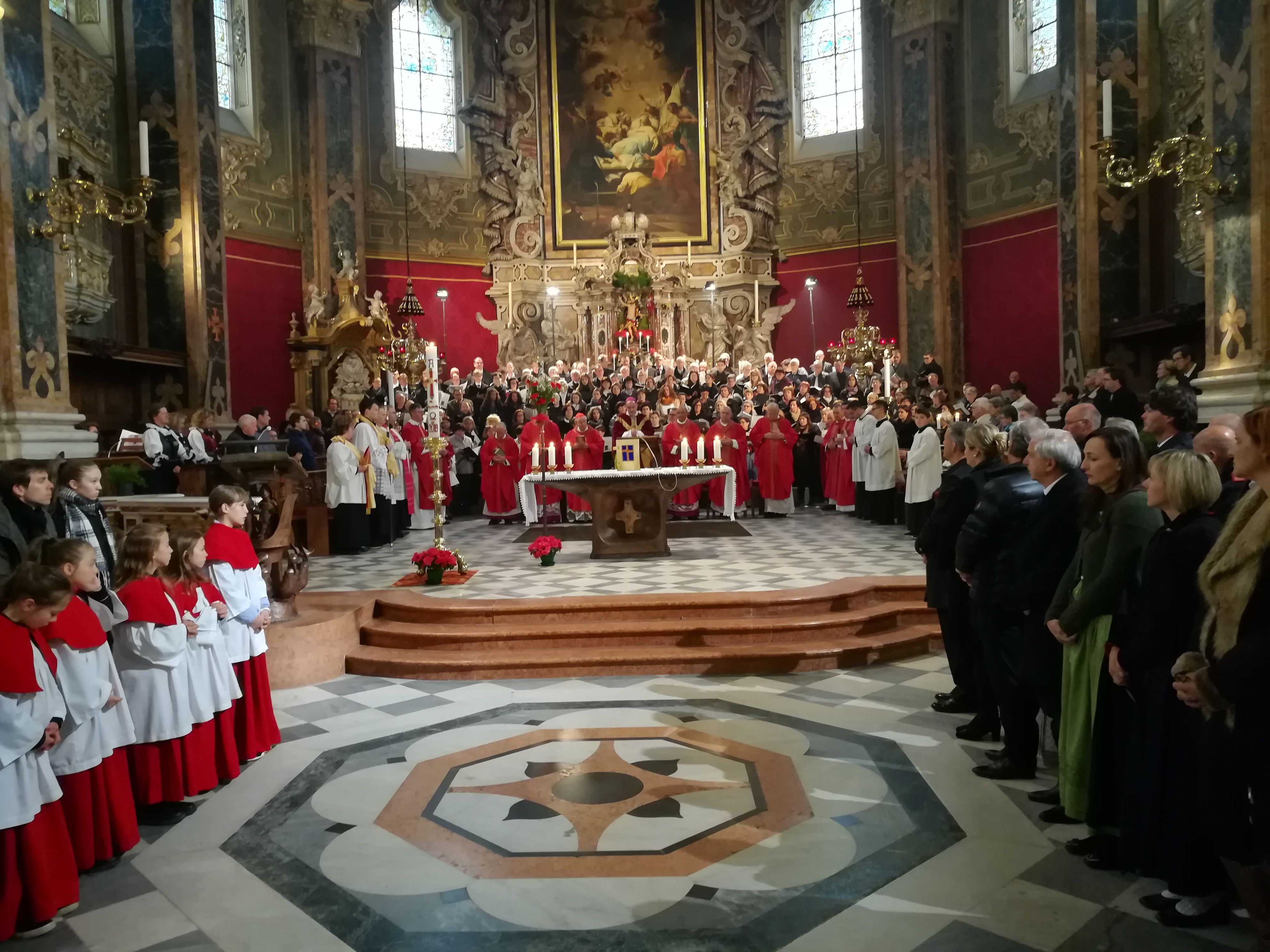 La festa dei patroni diocesani san Cassiano e san Vigilio, che si celebra a Bressanone da oltre 300 anni, è iniziata con l’ingresso in duomo dei fedeli, accorsi da tutto il decanato per il pontificale solenne presieduto dal vescovo Ivo Muser. La processione di San Cassiano, con le sante reliquie portate lungo le strade della città, si è snodata subito dopo la celebrazione, per concludersi in piazza Duomo con la benedizione finale.