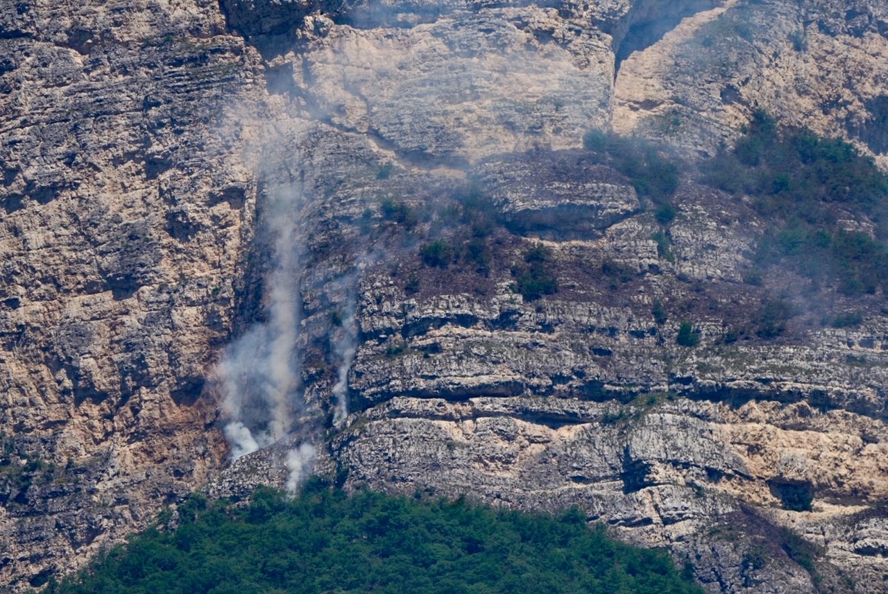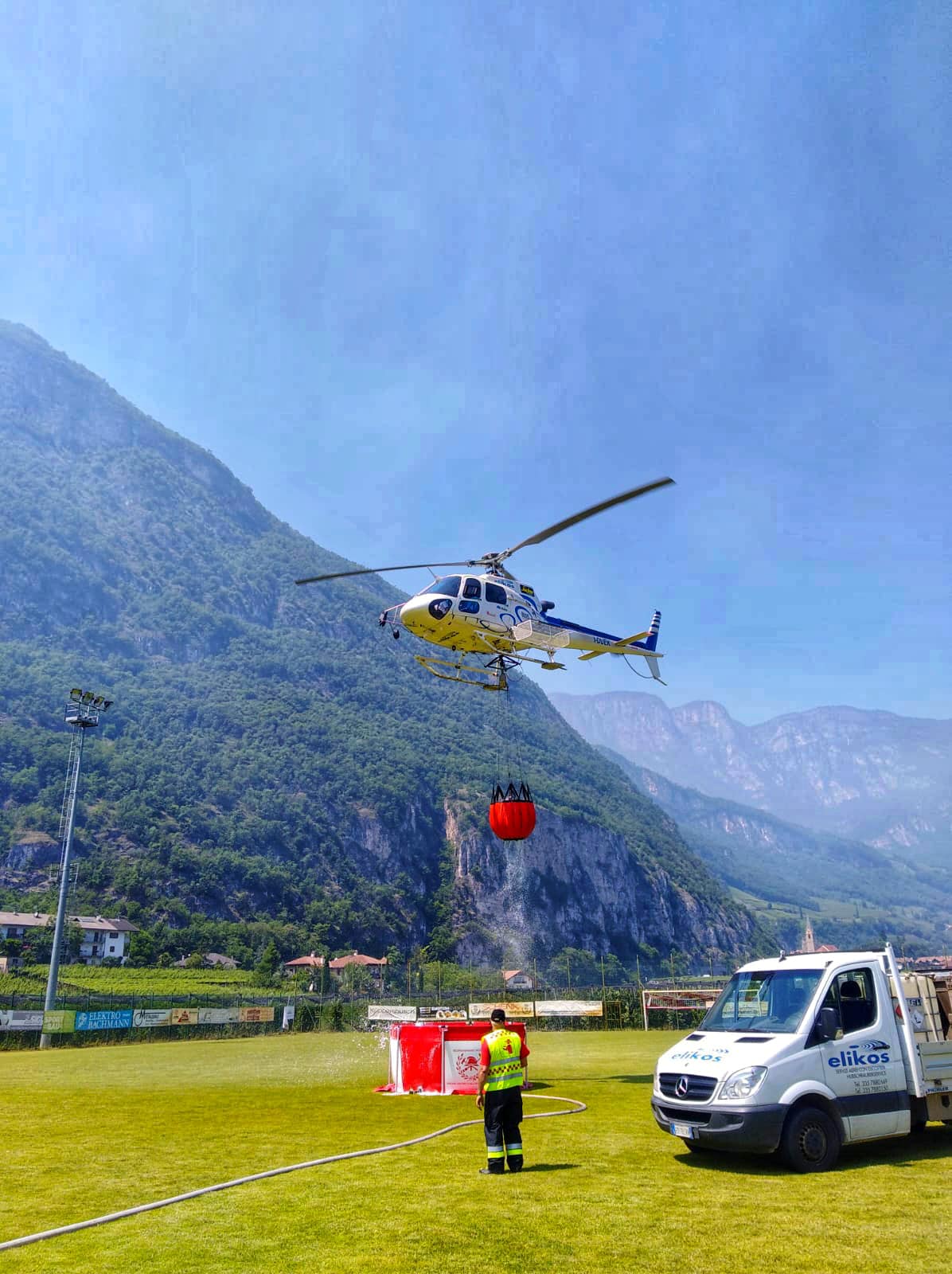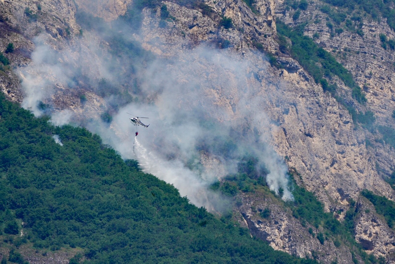 Oggi è arrivato in zona anche un elicottero per effettuare i lanci d’acqua con la benna Bamby.