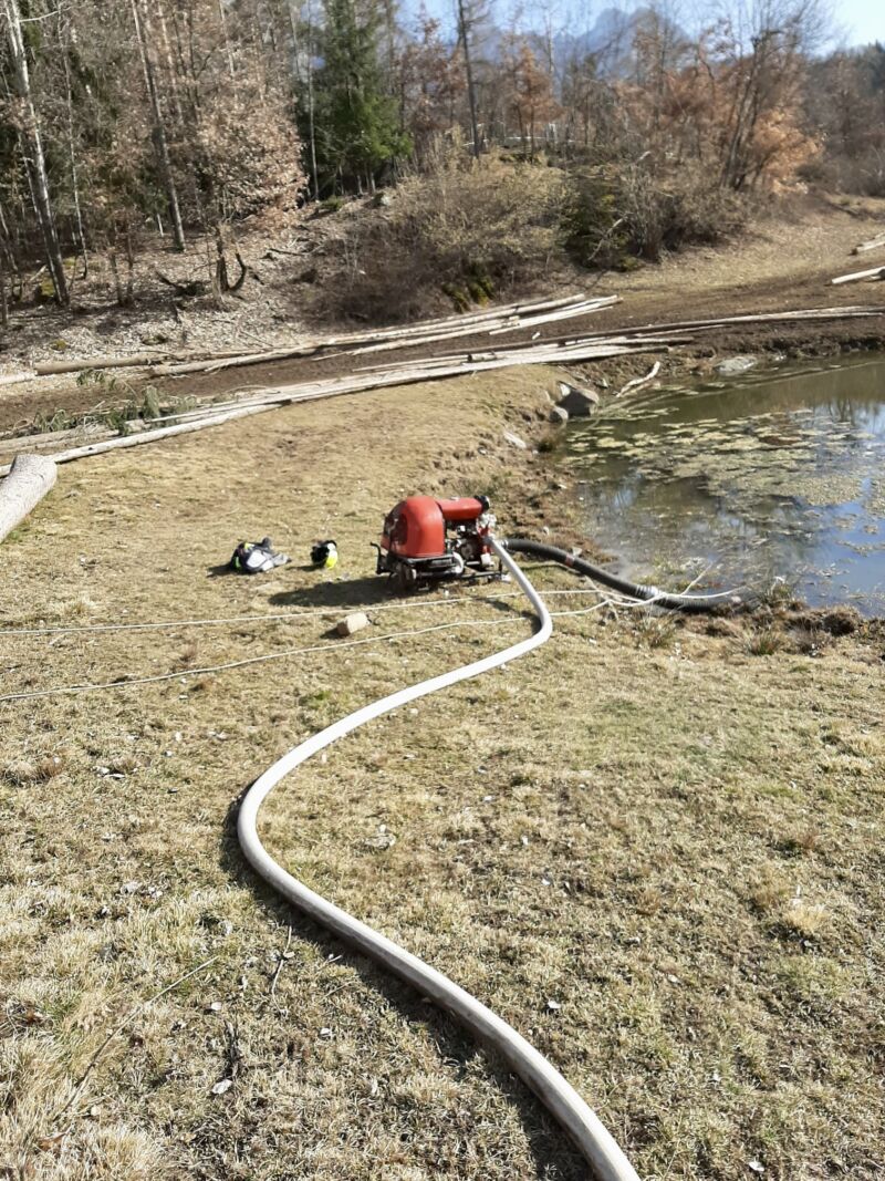 L’acqua utilizzata per spegnere è stata prelevata con più pompe ed è stata stesa una lunga linea per l’approvvigionamento idrico.