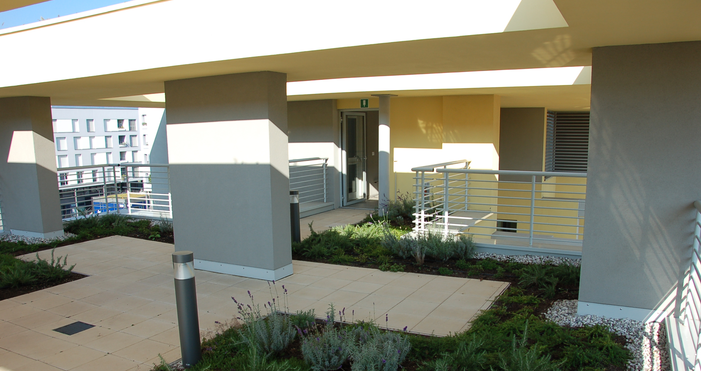Al quarto piano poi una terrazza giardino destinata agli alloggi e costituita da aiuole coltivate con erbe aromatiche.
