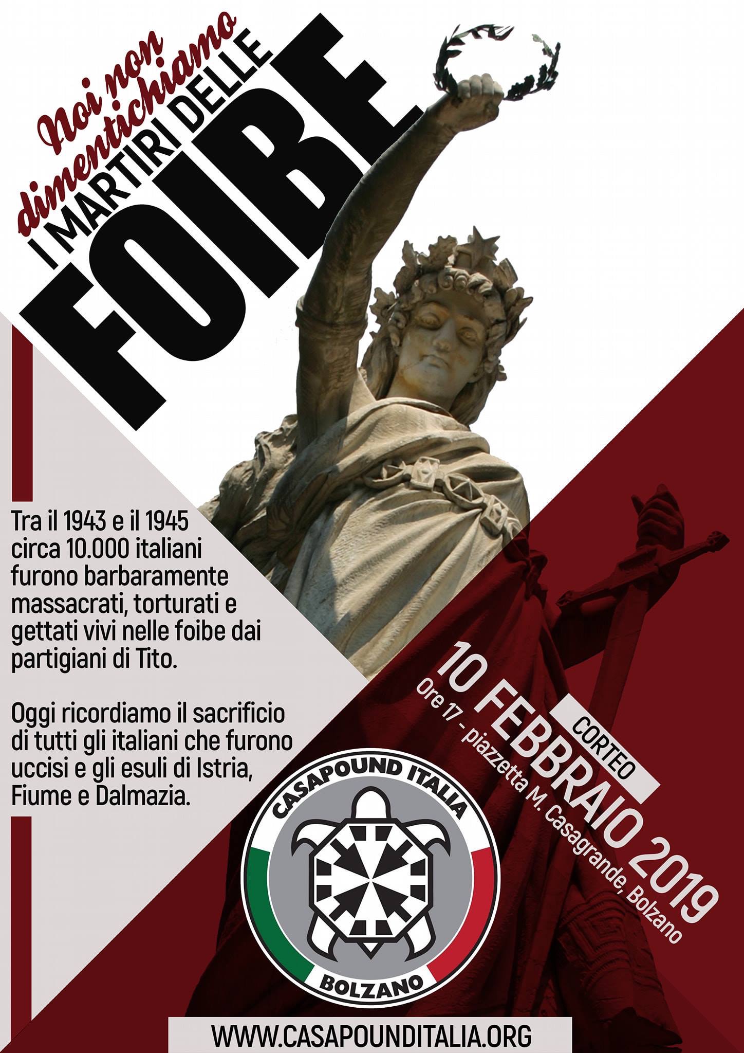 FOIBE, oggi CasaPound ricorda i martiri con un corteo a Bolzano