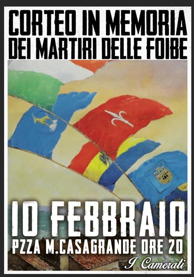 E’ previsto per questa sera a partire dalle 20 con ritrovo in piazza Marcella Casagrande a Bolzano, l’avvio del corteo di commemorazione del giorno del ricordo, dedicato alle vittime delle Foibe.