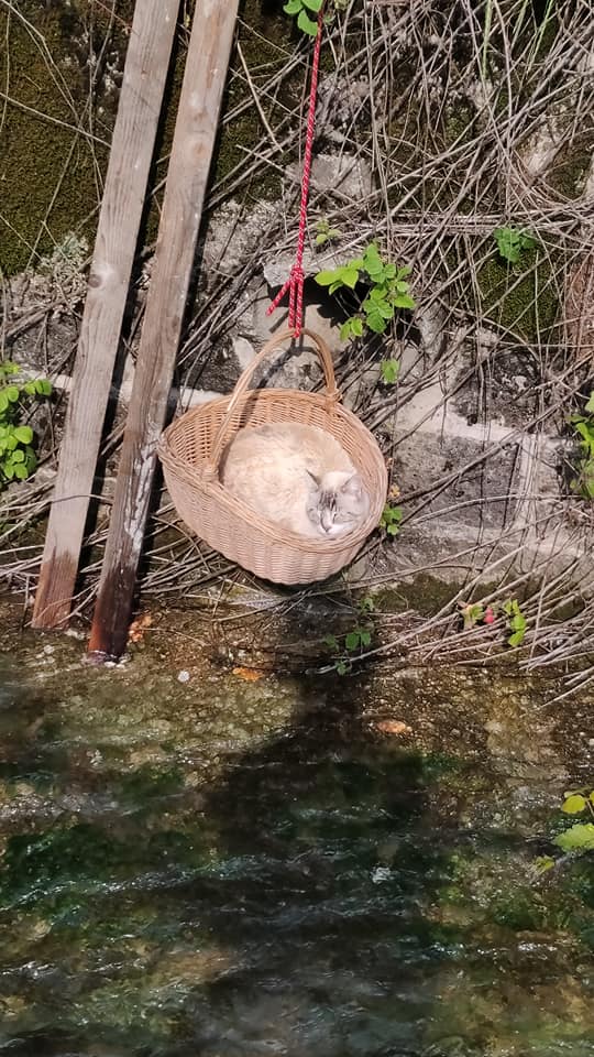 Invece no, meglio pensare ad una astrusa soluzione che fortunatamente si è risolta positivamente: il gatto non si è mosso dal cesto e così non è caduto in acqua, facendo capolino dal bordo si è fatto notare ed è stato salvato.