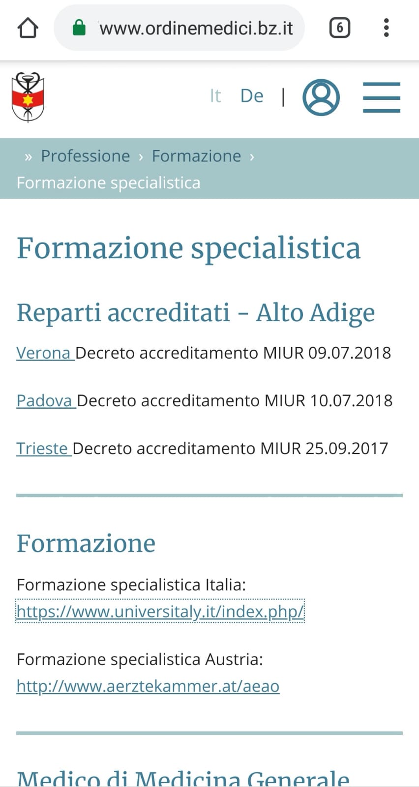 La nuova versione della pagina ricavata dal sito dell’Ordine dei Medici dell’Alto Adige: