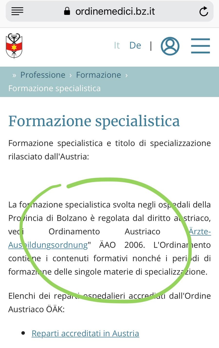 L’Ordine dei Medici dell’Alto Adige ha oscurato la pagina internet del suo sito istituzionale all’interno della quale veniva riportata l’indicazione della dipendenza della formazione dei medici altoatesini dall’ordinamento austriaco.