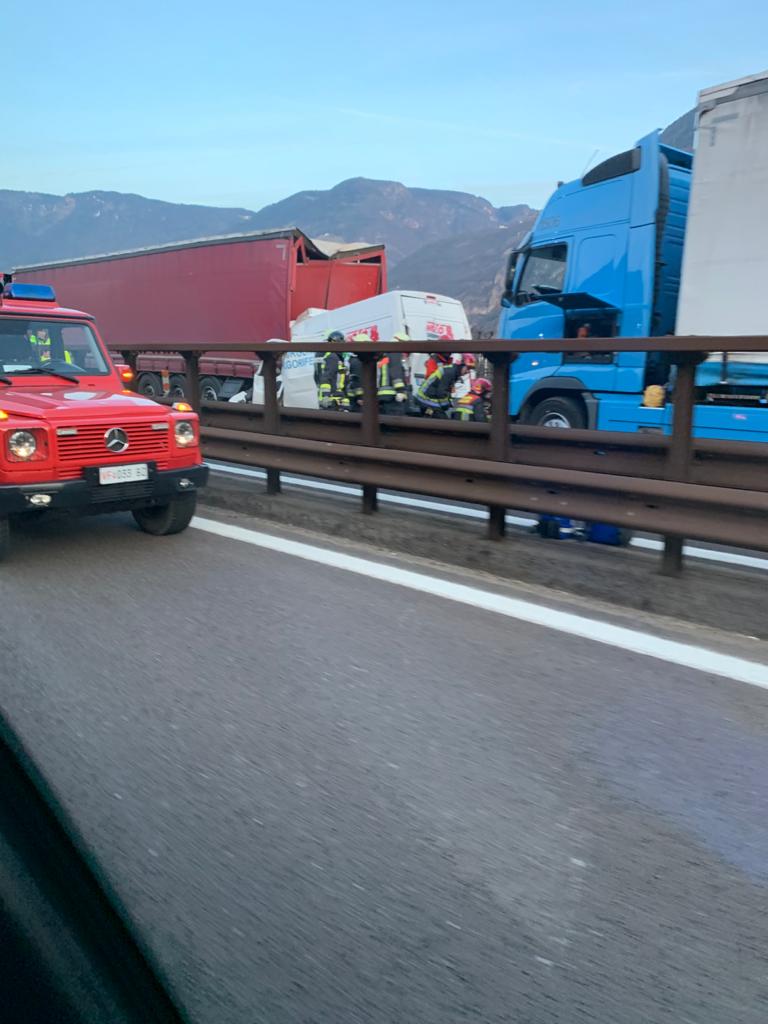 Un altro grave incidente si è verificato questo pomeriggio poco dopo le 16 in A22, sempre in carreggiata Nord e sempre nel tratto compreso tra Egna e Bolzano Sud, questa volta al chilometro 93, dove un furgone è finito sotto un tir.