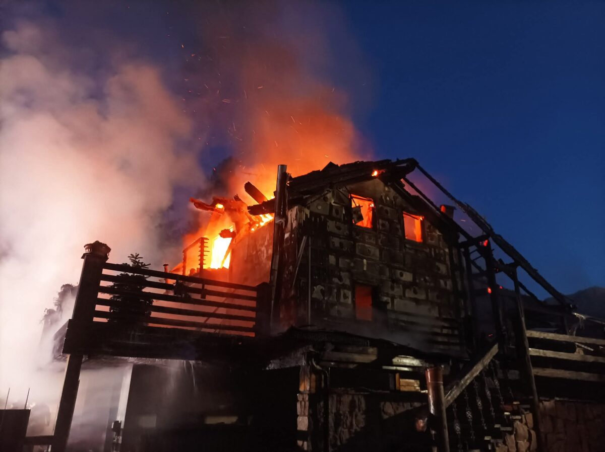 La struttura, interamente in legno, è stata rapidamente avvolta dalle fiamme, che hanno coinvolto l’intero edificio e risultavano visibili anche a grande distanza.