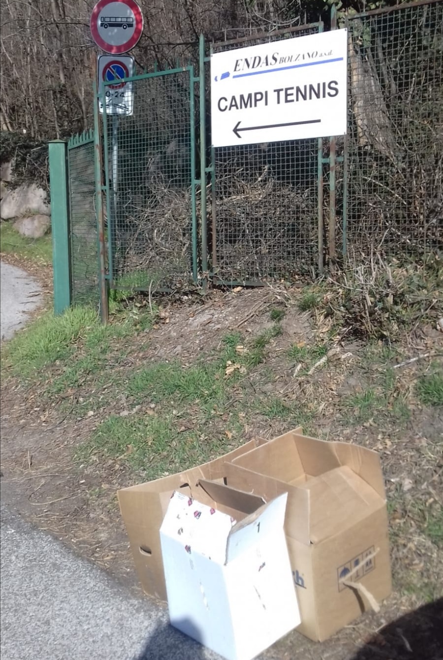 Il materiale che ci è stato inviato è stato fotografato la mattina dello scorso sabato da un amico di un nostro lettore. nell’area della discarica dove un tempo c’era un campo rom, più precisamente in via Castel Firmiano 49 a.