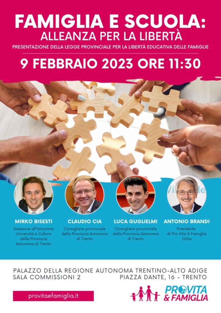 E’ quanto verra presentato in una conferenza stampa – promossa da Pro Vita & Famiglia Onlus – giovedì 9 febbraio 2023, alle ore 11 a Trento, presso il Palazzo della Regione Autonoma Trentino-Alto Adige (Sala Commissioni 2) in piazza Dante, 16.