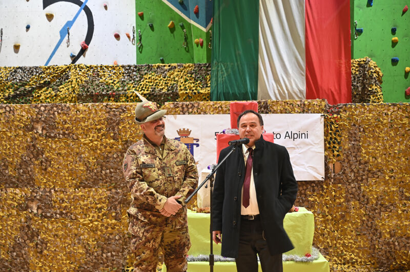 Il Colonnello Massimiliano Cigolini, Comandante del 5° Reggimento Alpini, ha colto l’occasione per mostrare i prodotti di una raccolta solidale di generi alimentari, realizzata ogni anno nel periodo natalizio dal personale della caserma, che verranno consegnati al parroco di Vipiteno Don Giorgio Carli in un momento successivo.