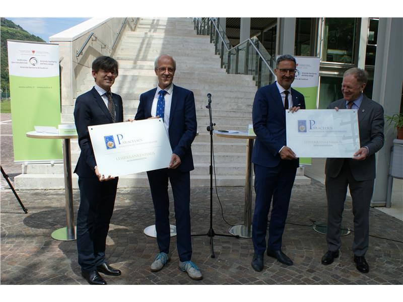 Nel corso della conferenza stampa che si è svolta martedì, ha avuto luogo la sottoscrizione ufficiale dell’accordo di riconoscimento e la consegna delle relative targhe da parte del Rettore dell’Università medica Paracelsus di Salisburgo, Wolfgang Sperl, al Presidente della Provincia autonoma di Bolzano Arno Kompatscher e dal Vicerettore della PMU Christian Pirich al Direttore generale Florian Zerzer.