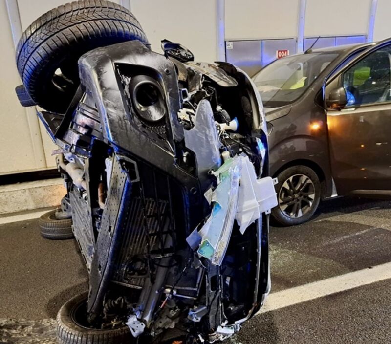 Grave incidente in A22, auto si ribalta in galleria: nove i feriti