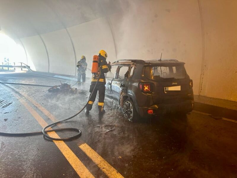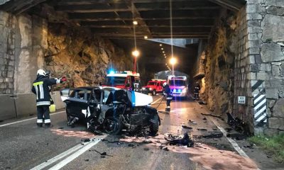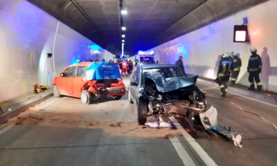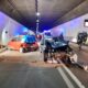 Grave scontro auto-moto con incendio all’ingresso della galleria