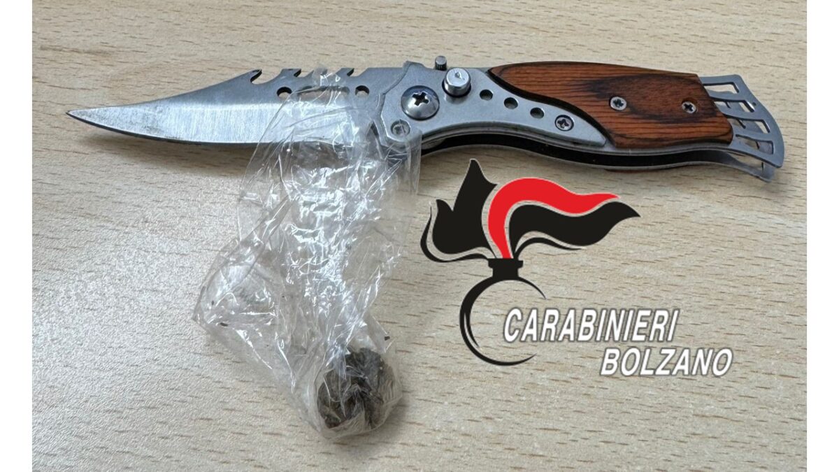 La sostanza stupefacente e l’arma sono state immediatamente sequestrate, in base agli articoli 75 del D.P.R. 309/1990 e 354 del codice di procedura penale. Il giovane è stato quindi segnalato all’Autorità Amministrativa per uso personale di stupefacenti e deferito in stato di libertà alla Procura della Repubblica presso il Tribunale di Bolzano per il reato di porto abusivo di armi od oggetti atti ad offendere.