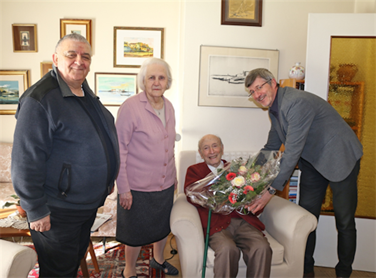 L’assessore agli affari sociali Stefan Frötscher gli ha fatto oggi visita per consegnargli un omaggio floreale e per congratularsi con lui a nome dell’intera amministrazione comunale.