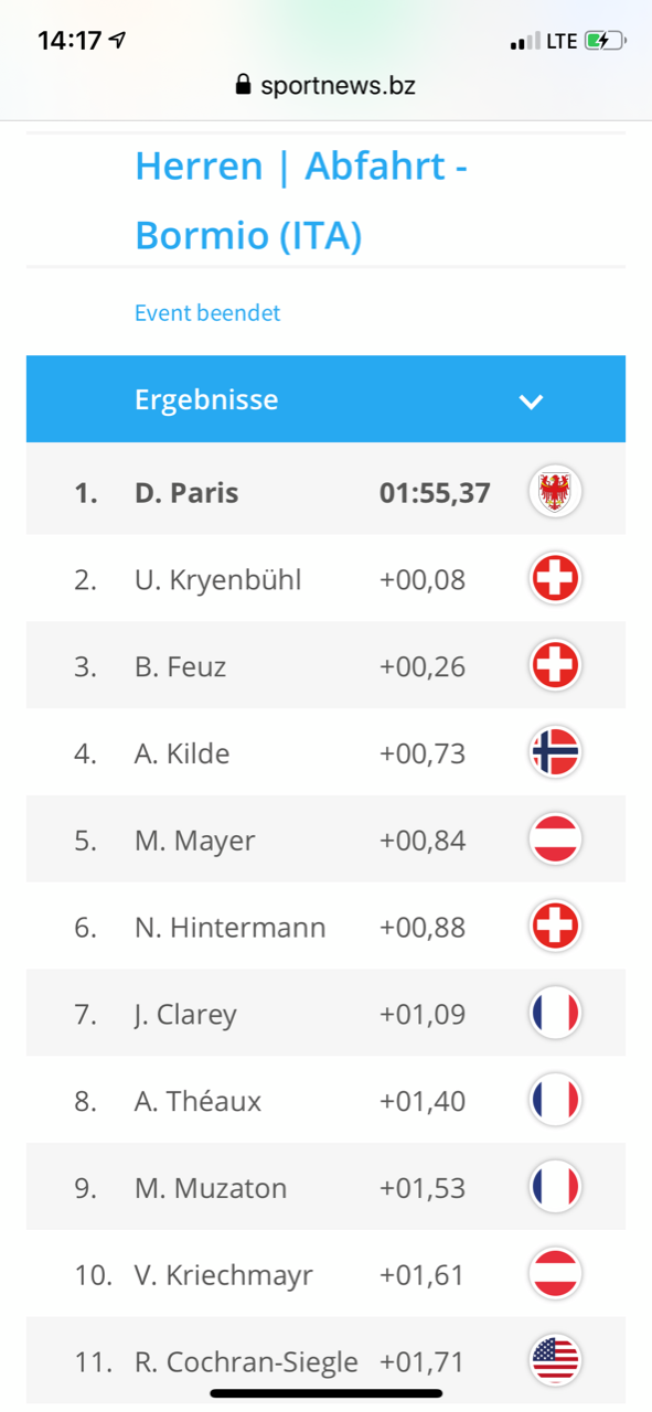 “Al vertice della classifica per Sportnews.bz non figura nessun italiano ma si sono inventati lo sconosciuto stemmino della bandierina con l’aquilotto tirolese. Cosi fra bandiere nazionali di Svizzera, Norvegia, Austria, Francia il Tricolore italiano letteralmente scompare sostituito da un’aquila.