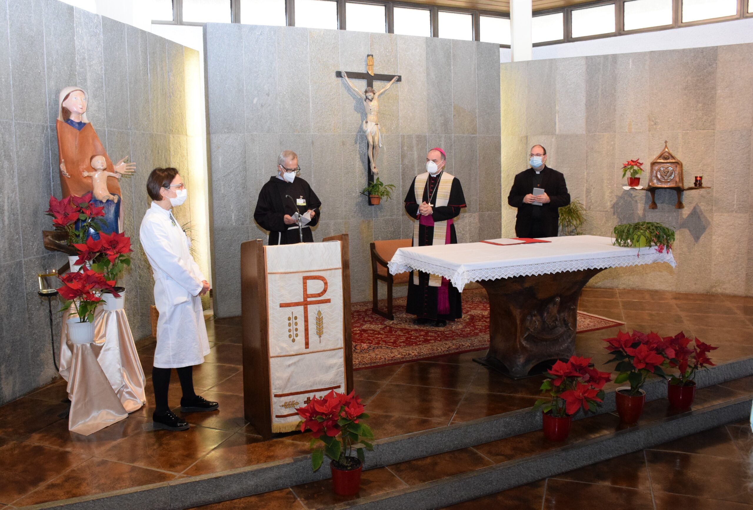 Al termine della celebrazione il vescovo ha pranzato con il personale nella mensa ospedaliera ed è poi entrato nei due reparti Covid, dove accompagnato dal primario Othmar Bernhart ha fatto visita ai pazienti. A seguire monsignor Muser ha visitato anche il reparto di Terapia intensiva e ha incontrato il personale impegnato e il primario dottoressa Ivana Gutwenger. Infine il vescovo si è fermato anche a salutare i pazienti del reparto di Riabilitazione.