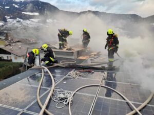 Per la localizzazione e lo spegnimento del fuoco, il tetto è stato aperto in più punti. Le fiamme hanno interessato parzialmente anche l’impianto fotovoltaico.