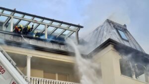 Al loro arrivo, le fiamme uscivano già dal tetto e la situazione era aggravata dal forte vento che ha alimentato l’incendio.