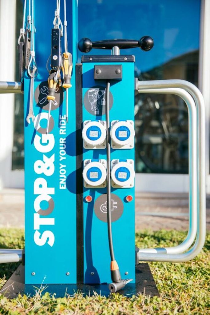 Tutto questo grazie alla presenza di prese elettriche a cui è possibile collegare da 1 a 4 biciclette, di una pompa manuale e di alcuni attrezzi saldamente vincolati alla struttura. La colonnina di ricarica e riparazione per biciclette si innesta nell’offerta delle stazioni di gonfiaggio già presenti in città, ampliando i servizi al cittadino e integrandosi perfettamente nel contesto di Bolzano “Città delle ciclabili” e nella “Ciclopolitana” recentemente realizzata dall’Amministrazione cittadina.