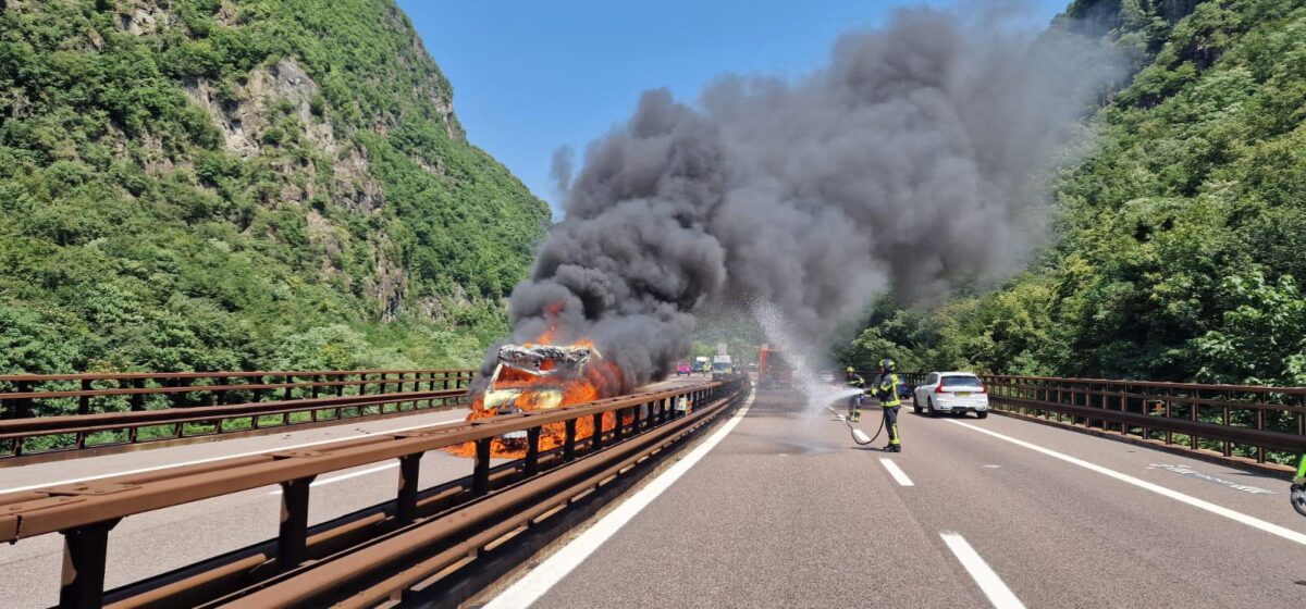 Incendio in A22, furgone distrutto: intervento complesso dei Vigili del Fuoco e traffico in tilt