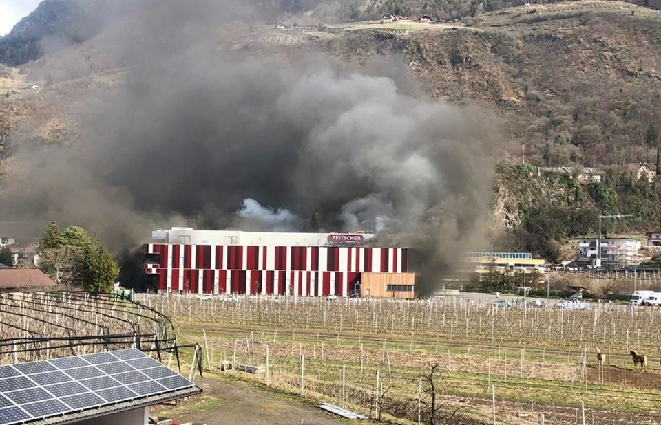 In intervento per quasi tutta la giornata unità provenienti da Lana, Gargazzone e Postal, Cermes, Foiana, Maia Bassa e Quarazze. Poco dopo le 18, e come si può vedere dal secondo video allegato (vedi sotto), era ancora imponente e altissima la nube di fumo che si innalzava inarrestabile dalla struttura.