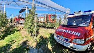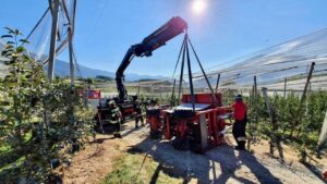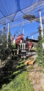 La causa dell’incidente è stata il rovesciamento di una piattaforma per la raccolta della frutta.