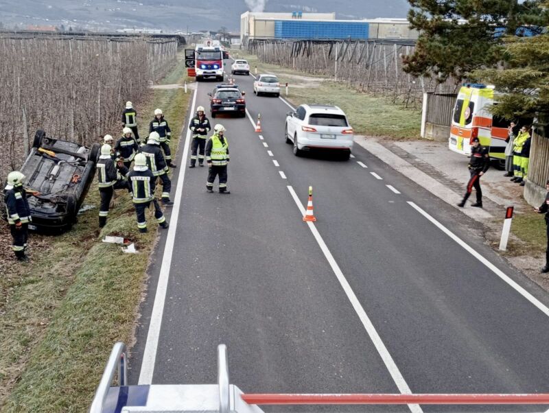 Incidente stradale questa mattina sulla strada Caldaro – Roverè della Luna con una macchina ribaltata.
