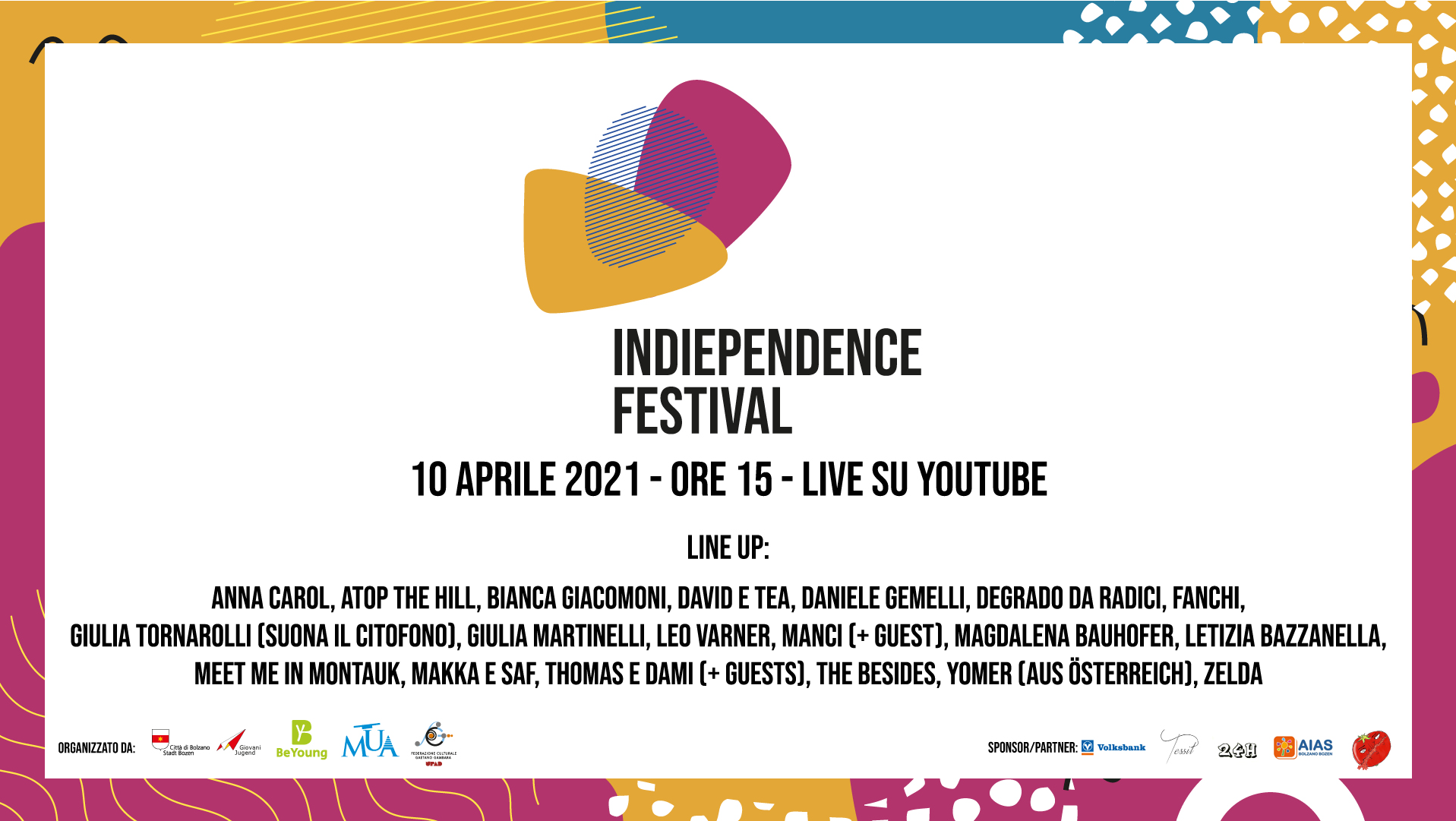 “Indiependence Festival” nasce dall’idea del musicista Jacopo Schiesaro, in arte “Fanchi”, e dalla collaborazione con l’associazione giovanile BeYoung e l’associazione universitaria MUA di Bolzano, che hanno trovato il sostegno dell’Ufficio Giovani del Comune di Bolzano.