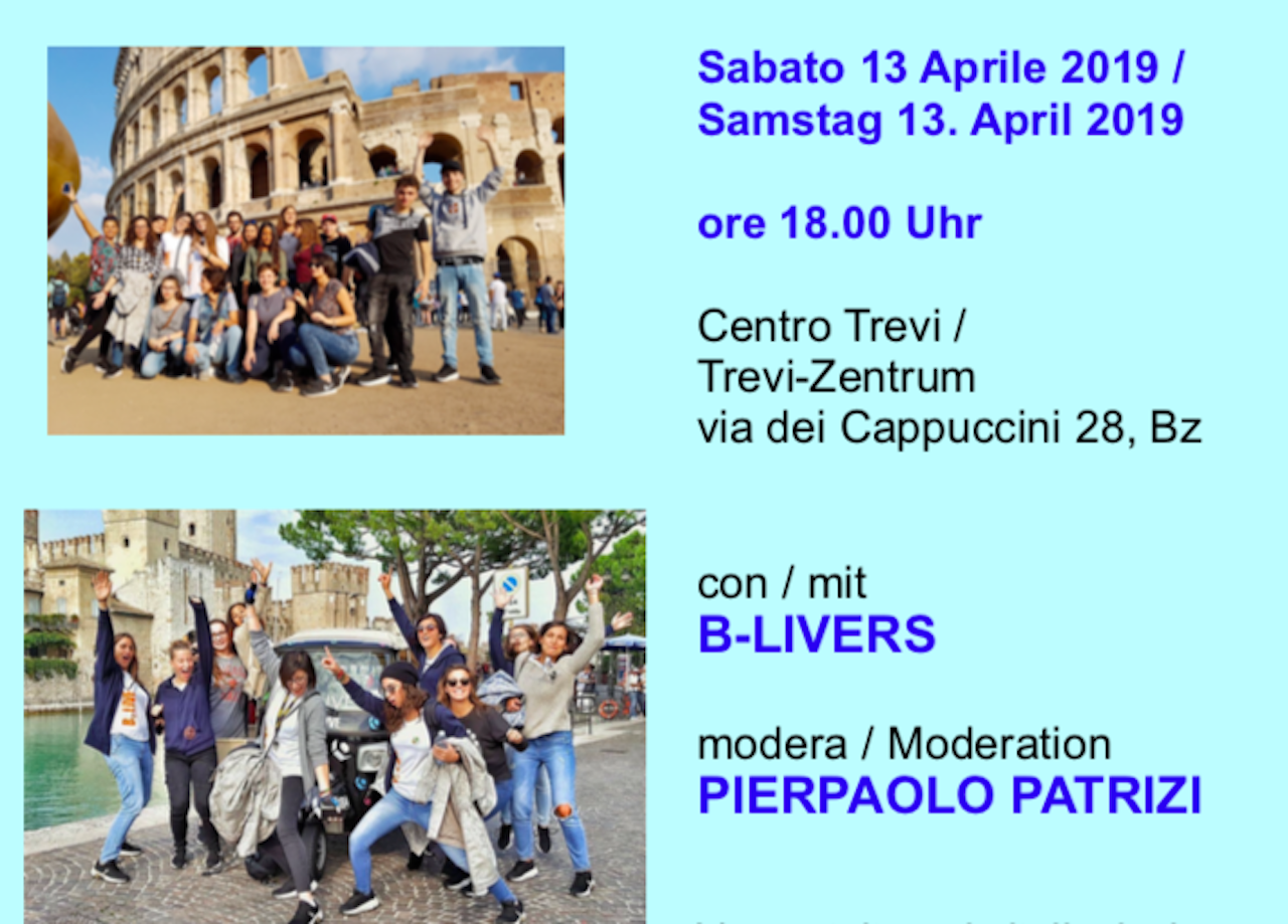 L’appuntamento è per sabato 13 aprile alle 18 presso il Centro Trevi in via dei Cappuccini, 28 a Bolzano.