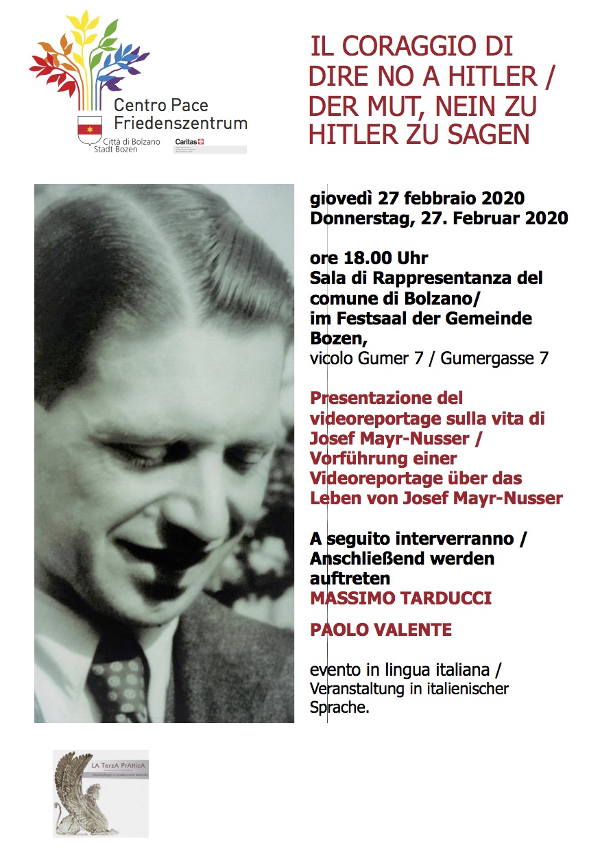 In occasione del settantacinquesimo anniversario della morte di Josef Mayr-Nusser, il regista Massimo Tarducci ha realizzato un videoreportage sul beato, ripercorrendo le tappe della sua vita, dai suoi anni di formazione e di attività presso l’Azione cattolica all’arruolamento forzato da parte delle SS, al fatidico rifiuto di giurare fedeltà a Hitler, fino alla sua morte durante il viaggio verso il campo di concentramento di Dachau.
