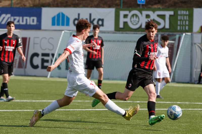 Il Milan la spunta di misura (2-1) a Maso Ronco. Turno casalingo per la formazione biancorossa impegnata nel girone B del campionato nazionale Under 17. Nella 22esima giornata, sul sintetico dell’FCS Center, i ragazzi di Momi Hilmi disputano una gara maiuscola contro il Milan, formazione di vertice. I biancorossi aprono lo score con Bahaj al 26’, sciupano qualche ghiotta occasione per poi subire la reazione dei giovani rossoneri. Il gol del pareggio momentaneo lo firma al 30’ Bonomi e al 33’ Manto mette a segno il gol che fissa il 2-1.