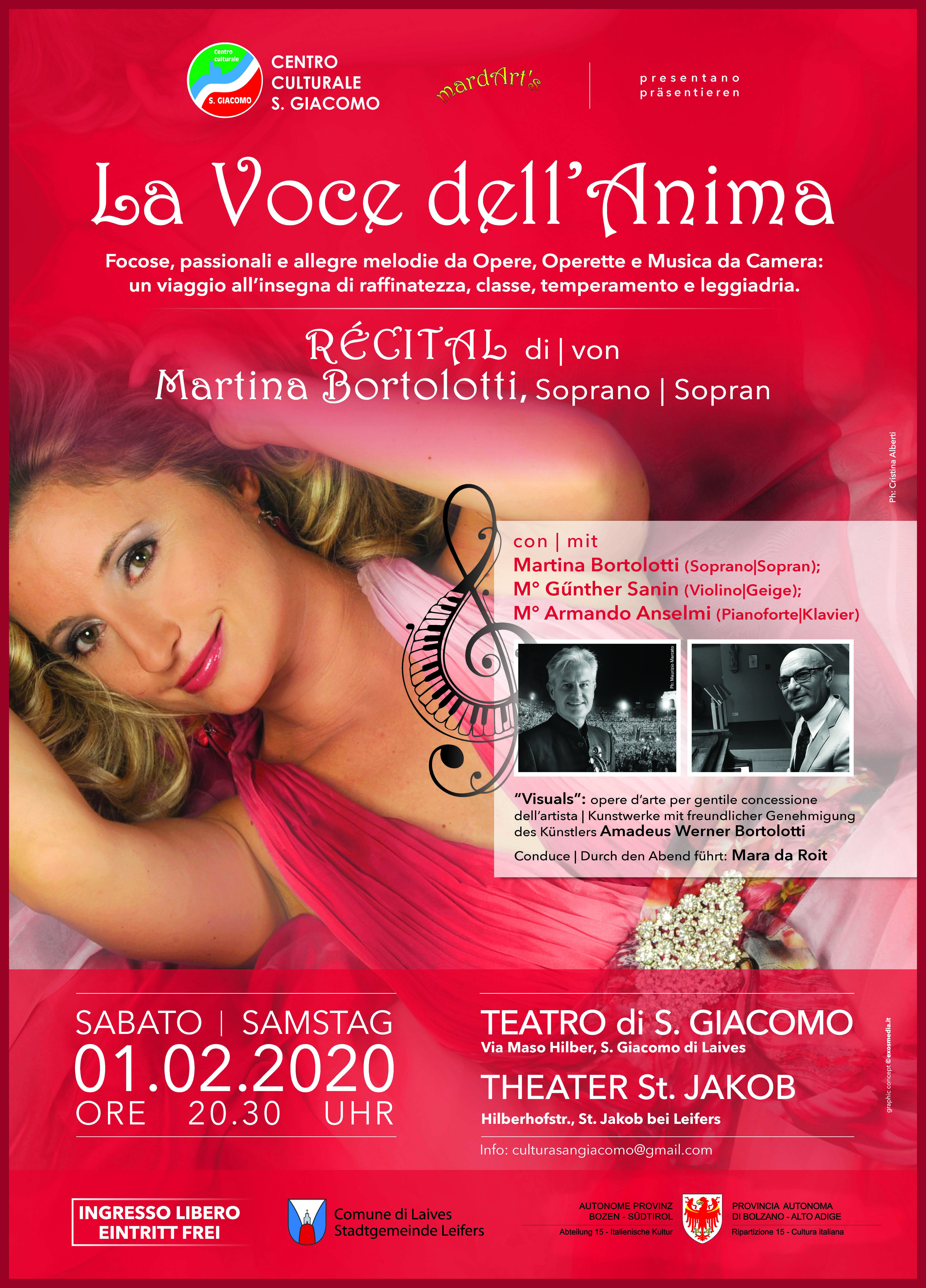 Aria di casa, per la affermata soprano di origine bolzanina Martina Bortolotti, che sarà protagonista di un raffinato quanto gioioso récital musicale nella sua terra. E aria di casa anche per il virtuoso violinista che l’accompagnerà: il M° Günther Sanin, Primo Violino dell’Orchestra della Fondazione Arena di Verona, originario di Vadena.