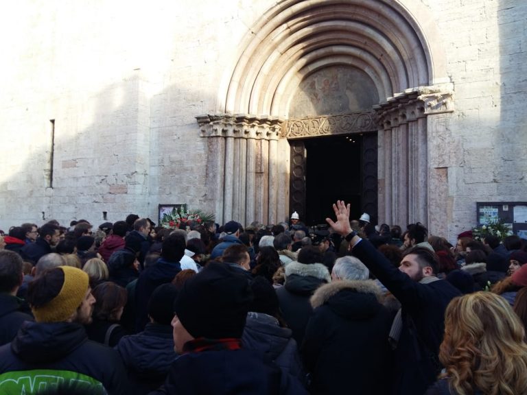 Ore 14.56 – «In Gesù parola e vita coincidono. Non c’è distanza, vita e parola si identificano. In quest’epoca in cui le parole rischiano di non essere abitate, di essere svuotate, o addirittura utilizzate per trame di morte e per immettere nel cuore degli uomini odio e rancore, ti diciamo grazie, Antonio. Grazie per aver creduto nella forza della parola che s’interroga, si pone domande e rinuncia a facili risposte. La parola che non s’impossessa di un microfono, ma offre voce agli altri e gode della loro ricchezza. Un pezzo di cielo è sceso in terra e ora vi fa ritorno. Per tutto e per sempre, grazie Antonio!» – Termina così l’omelia dell’arcivescovo Tisi
