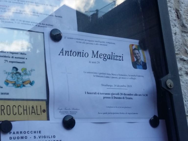 Ore 14.07 – Il commento liturgico della diretta Rai sarà curato da don Cristiano Bettega, delegato dell’area testimonianza della Diocesi ed ex collaboratore pastorale a Trento Nord, legato alla famiglia Megalizzi. La messa sarà celebrata dall’Arcivescovo Lauro Tisi.