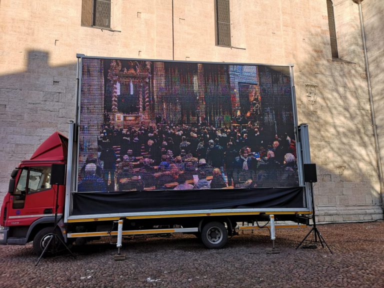 Ore 14.13 – È arrivato Antonio Tajani presidente del parlamento Europeo. È stato acceso il grande schermo vicino al Duomo, per chi non è riuscito ad entrare della chiesa.