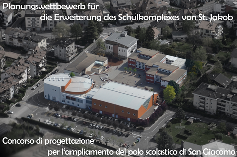 Il concorso di progettazione per l’ampliamento del polo scolastico di San Giacomo è stato bandito in collaborazione con la stazione unica appaltante per Servizi e Forniture della Provincia Autonoma di Bolzano.
