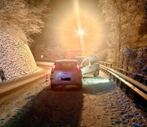 Alcune macchine sono uscite di strada a causa dell’eccessiva velocità e della neve che non permette di frenare mentre altre hanno fatto dei tamponamenti o hanno sbandato finendo contro il guard rail.