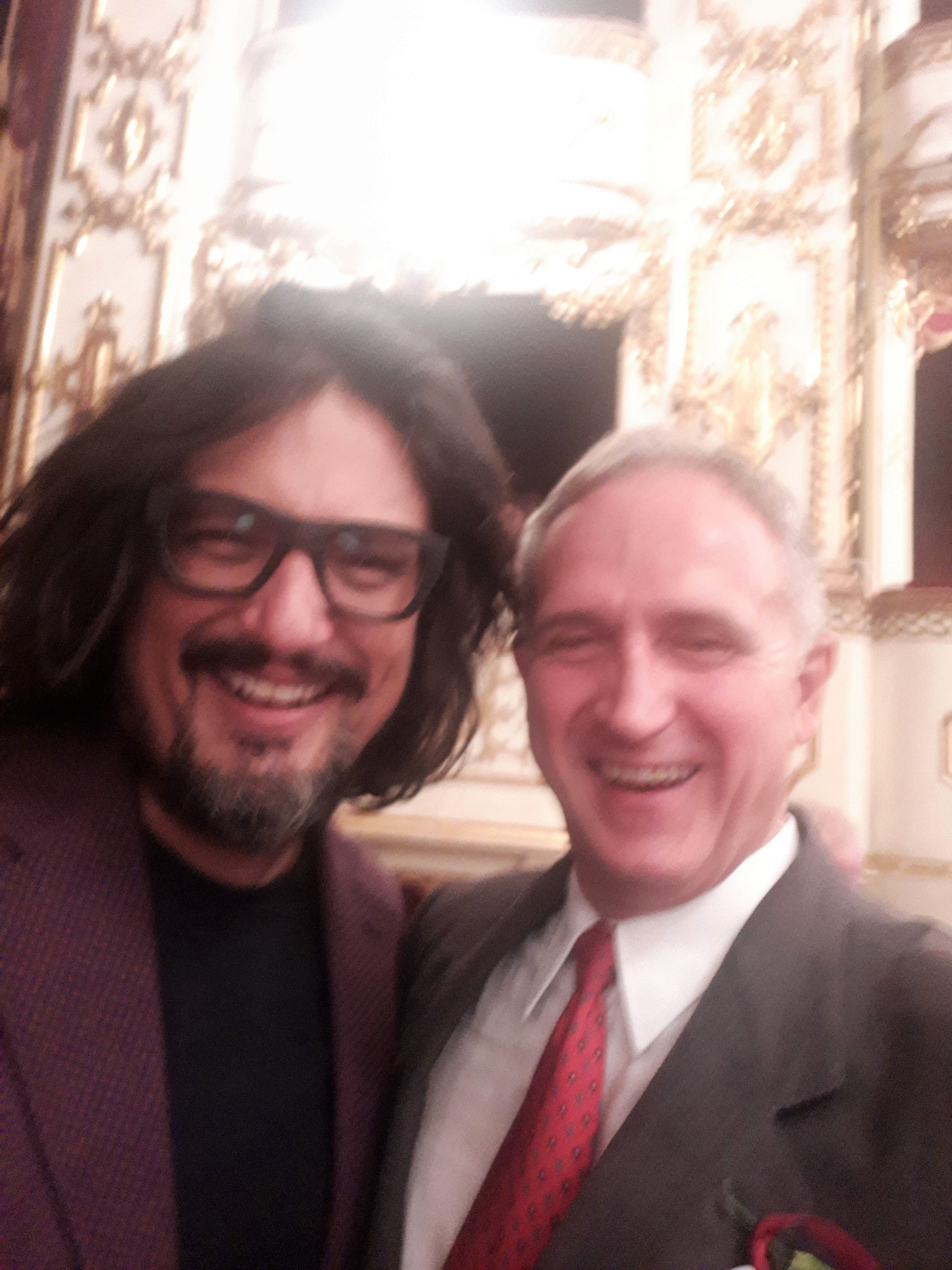 Tutti accomodati per gustare la Bomba di riso firmata da Andrea Incerti Vezzani di Cà Matilde e una Guancia alla maniera di Gianni D’Amato del Caffè Arti e Mestieri, fra gli affreschi e gli stucchi del teatro Valli.