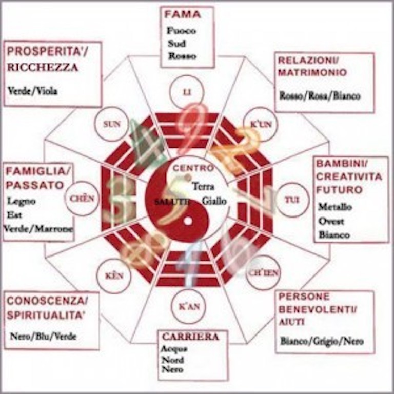 Per il Feng Shui il Bagua mette in relazione le varie aree della vita con le 8 sezioni dello spazio vitale.