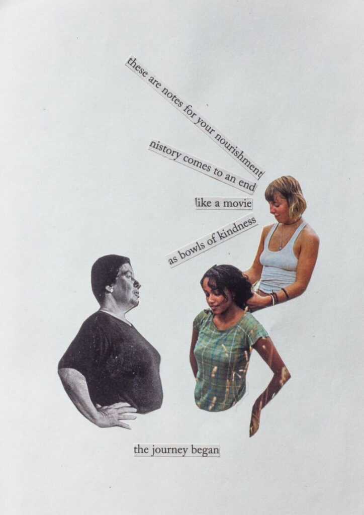 I collage sagaci e incisivi, composti da parti estrapolate da varie tipologie di stampati, generano giochi di parole e poesie visive che lasciano spazio a molteplici possibilità di lettura, mentre lo studio del nudo femminile dà spazio alla corporeità della donna all’interno di un mondo ancora in parte socialmente stereotipato e inibito.