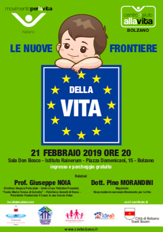 L’evento, realizzato grazie al sostegno del Comune di Bolzano, è promosso e organizzato dal Movimento e dal Centro di aiuto alla vita di Bolzano, in collaborazione con “Il cuore in una goccia” del Policlinico Gemelli di Roma, l’associazione Genitori Rainerum- Generazione famiglia e l’associazione culturale IDEALI.