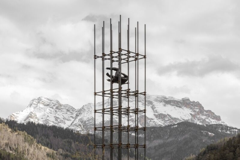 Nel nuovo edificio accanto al castello, sabato, è stata presentata anche l’installazione TOR di Lois Anvidalfarei: si tratta della figura in bronzo “Fallender”, una di sei realizzate dall’artista badiota nel 2013 per il ciclo Conditio Humana, sospesa in una struttura fatta di tubi da impalcatura. Si tratta di un’opera sull’esistenza in bilico tra forza fisica, contenimento, sopportazione e cedimento, o come dice Anvidalfarei: «L’essere umano dentro alla sua caducità. Benché sia temporanea la vita e fallibile, l’anelito alla sua perfezione è origine di un alto principio.»