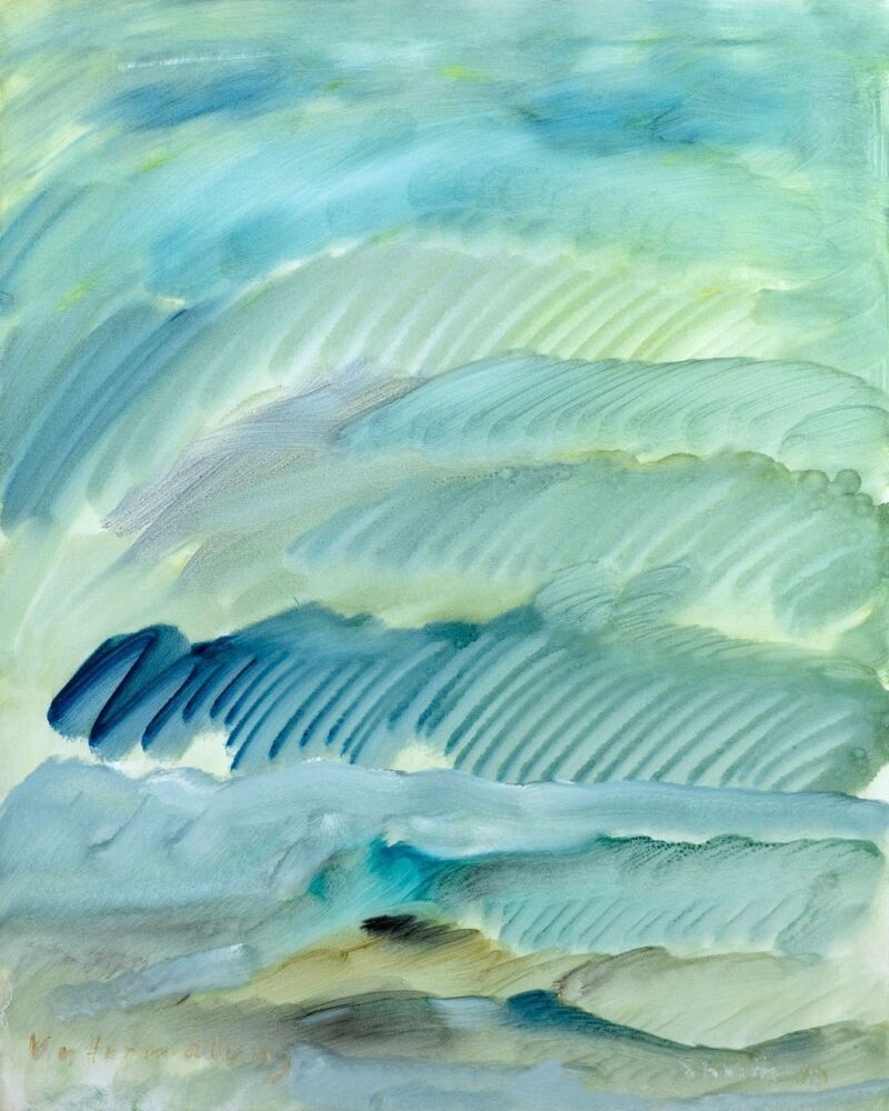«Nord e sud. Mare e montagna. Colore e forma. Sono questi i poli opposti che Sprotte mette in dialogo con estrema naturalezza.» Così il curatore Phil Mer riassume i temi della mostra. Nel sottolineare di non essere un paesaggista, Sprotte lascia intendere che i suoi quadri non sono un’impressione oculare di ciò che vede. «Prova ne è il fatto che non fosse solito dipingere en plein air, ma che, al contrario, dipingeva il mare anche quando si trovava in montagna e viceversa, perché dopo tanti anni di pratica, un artista assimila ed interiorizza la natura, trovando l’immagine dentro di sé» sottolinea il curatore. Contrariamente a ciò che spesso succede nella storia dell’arte, quando i colori dei pittori si accendono in seguito ad un viaggio al sud, la tavolozza di Sprotte trova il colore vincente al nord e l’anatomia della forma al sud. In montagna Sprotte scurisce i toni, alleggerisce la superficie pittorica, rafforza il disegno. Paradossalmente il nord scalda la sua tavolozza e il sud la raffredda.