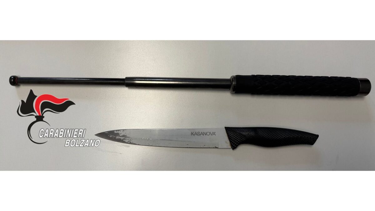 Il coltello e il manganello sono stati sottoposti a sequestro.