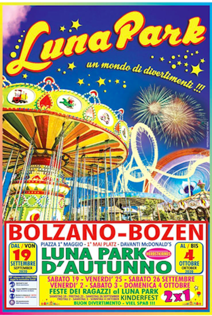 Torna da sabato 19 settembre a Bolzano l’appuntamento con il divertimento. A partire da questo fine settimana e fino al 4 ottobre il Luna Park d’autunno aspetta tutti i bolzanini in piazza 1° maggio, davanti al Mc Donald’s, per due settimane dedicate allo svago.