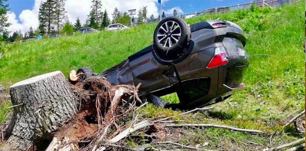 Pericoloso incidente oggi intorno a mezzogiorno a Nova Levante dove un’auto è uscita di strada cappottandosi lungo un pendio ripido.