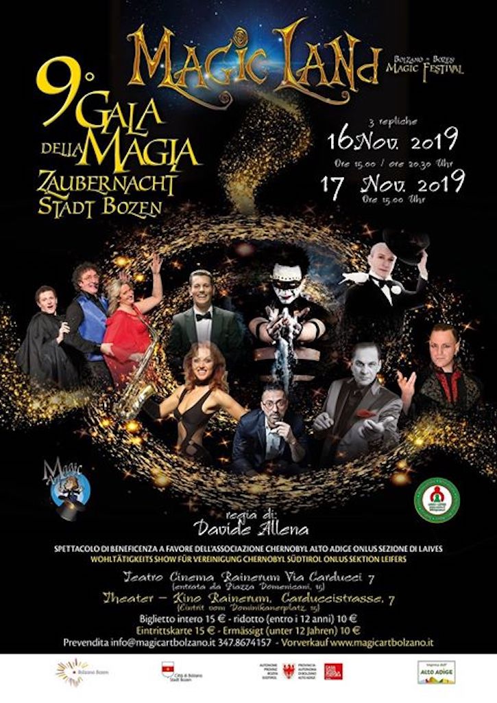 Si tratta di un evento di beneficenza a favore dell’associazione Chernobyl Alto Adige Onlus (sezione di Laives) organizzato da Magic Art del conosciutissimo mago Spillo, che andrà in scena il 16 e 17 novembre con 3 repliche: sabato 16 alle 15.00 e alle 20.30, domenica 17 alle 15.00.