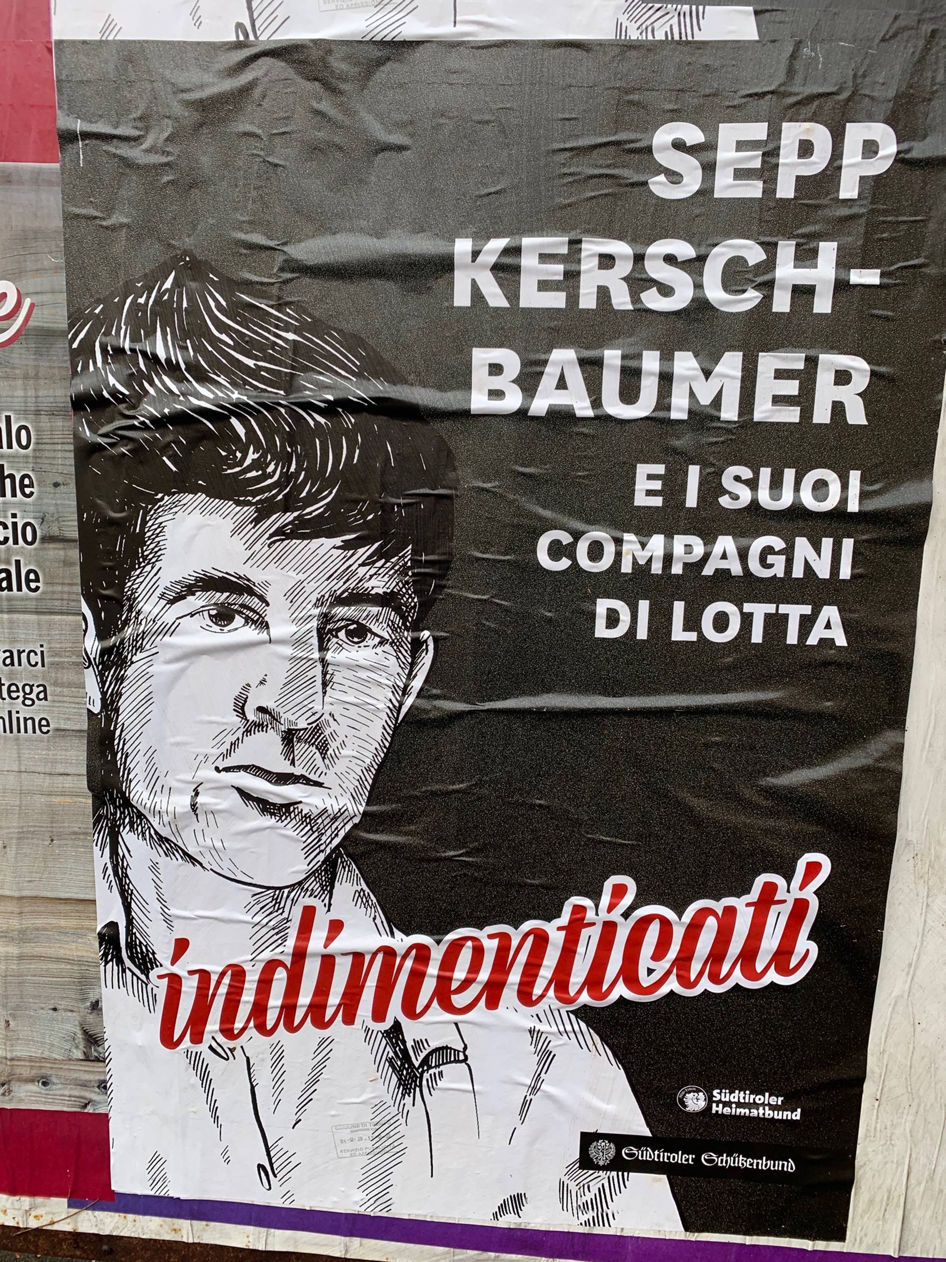 Dopo la diffusione in diverse zone della provincia di Bolzano, sono comparsi anche in Trentino (in una inedita versione solo in lingua italiana) i manifesti inneggianti alla figura dei terroristi sudtirolesi, Sepp Kerschbaumer ma anche i suoi accoliti, ossia coloro che scatenarono la tempesta di fuoco e di bombe sull’Alto Adige nella notte dei fuochi in cui morì lo stradino Giovanni Postal di Grumo e che aprì la strada alla ancora più cruenta stagione successiva.