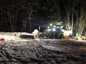 Nella mattinata di oggi, mercoledì 16 febbraio, un trattore è scivolato sulla neve ed è finito in un fosso a Mantana.